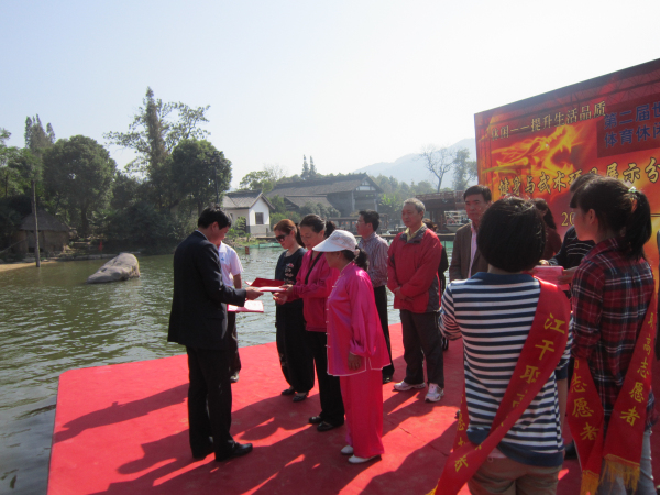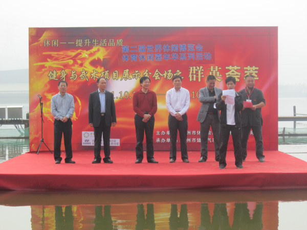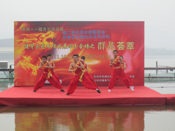 | 2011第二届杭州国际休博会体育嘉年华之水上擂台群英会已于2011年10月10日-16日在浙江湘湖旅游度假区金沙滩举行。此次活动由杭州市体育局主办,杭州市健身气功协会承办,全部活动内容包括拳击、散打、杭手外还有武术、健身气功、街舞、排舞、独轮车的展示,总共参与人数达1023人,杭州五套、杭州影视频道新闻搜搜看、浙江卫视、西湖明珠频道、萧山电视台、浙江在线、杭州日报、杭州网、体坛报等媒体对本次活动进行了报道。