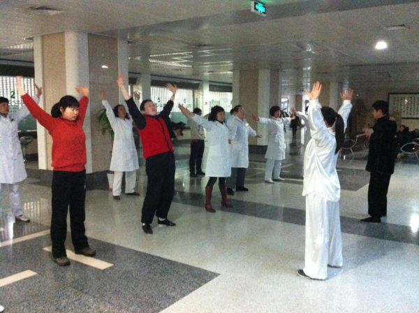 2月28日早上,应新华医院康复科张主任邀请,由协会李红苗、钱亚玲、严国强教授国家健身气功管理中心推广的健身气功—《八段锦》。从28日起,每周二、周四早上7:30—8:00在新华医院的住院部一楼大厅,培训健身气功——《八段锦》,大家坚持每天都锻炼,无论是康复科医生、护士还是在住院的病人都主动的来参加培训,学习的积极性很高。