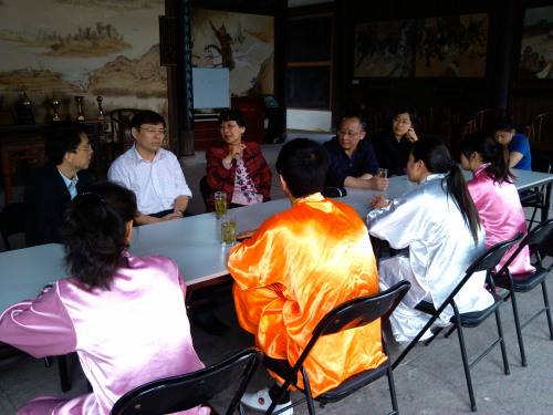 | 4月17日下午,中国反邪教协会副秘书长程宁宁一行,在省反邪教协会任秉文秘书长等领导陪同下,走访了位于西溪湿地演武厅的国家体育总局健身气功管理中心培训基地,调研体育反邪工作。西湖区科协孔村光主席、反邪教协会常务副理事长滕兆生副主席、区反邪教协会钱岸瑛秘书长结合区域特点,向国家及省反邪教协会领导汇报了我区体育反邪教工作开展的情况。培训基地负责人李红苗主任组织了健身气功表演,并于稍后向各位领导汇报了健身气功在全区、全市,乃至全省、全国范围内的宣传与开展情况。